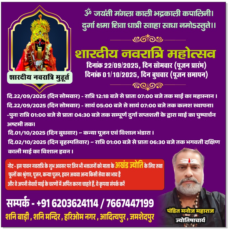 शारदीय नवरात्रि महोत्सव By shanibadiastoreservice@gmail.com / September 19, 2025 / No Comments / महत्वपूर्ण तिथियां Leave a Reply Cancel replyYour email address will not be published. Required fields are marked *Comment * Name * Email * Website Save my name, email, and website in this browser for the next time I comment.